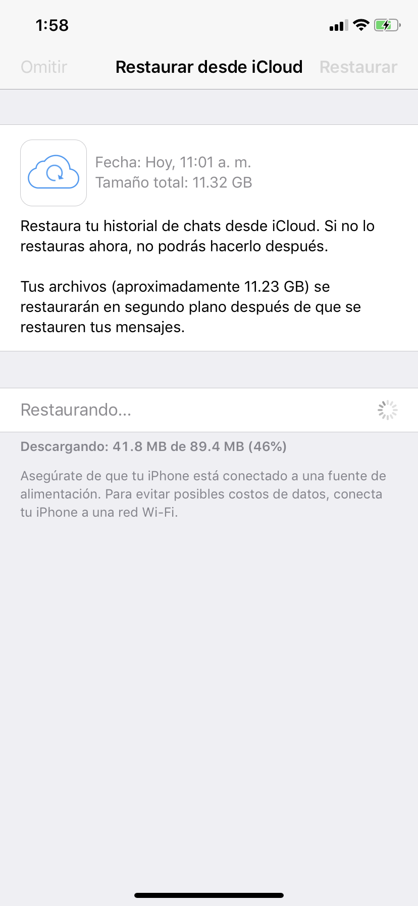 Necesito ayuda. A pesar de que hice una copia de seguridad de mi WhatsApp y está en mi iCloud no puedo descargarlo ahora que volví a descargar WhatsApp en mi nuevo iPhone.
