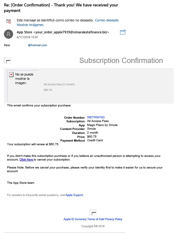 Hola, estoy recibiendo muchos mails últimamente de una cuenta falsa de apple, y me solicitan clickear un link para cambiar mi ID de apple y contrasñea o de lo contrario se me bloquearía la misma en 24hs. También me mandan mails con confirmaciones de compra que yo no hice. No sé como hacer para que no tengan acceso a mi mail, y tampoco quiero que sepan cual es mi ID apple. Alguno sabe de el tema?