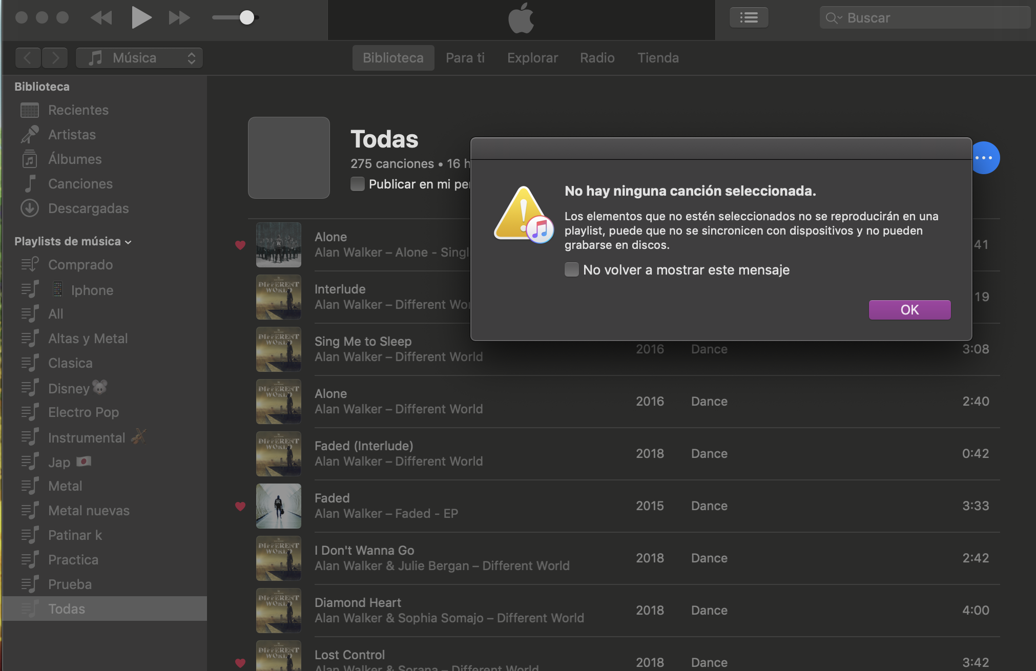 Error en Itunes: "No hay ninguna canción seleccionada"