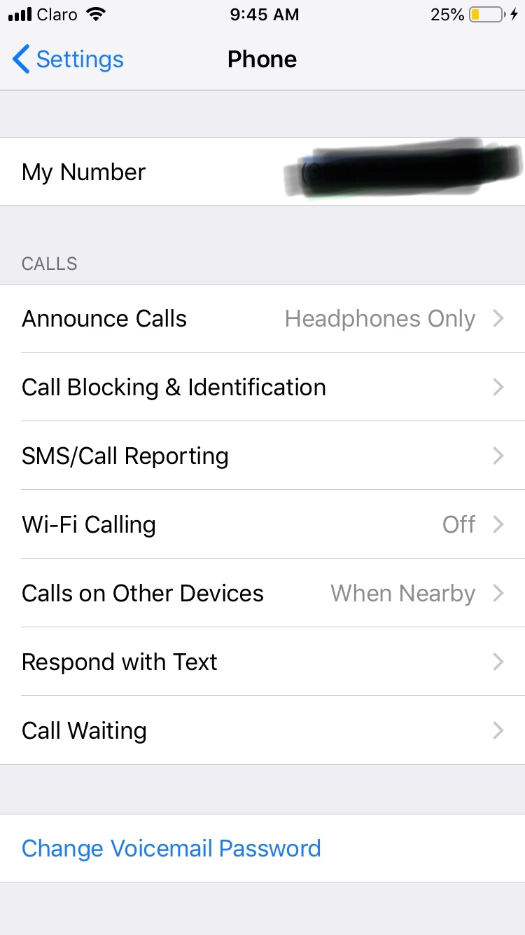 Al ingresar por Ajustes/Teléfono en el apartado de llamadas no aparece la opción “Desvío de Llamadas”.