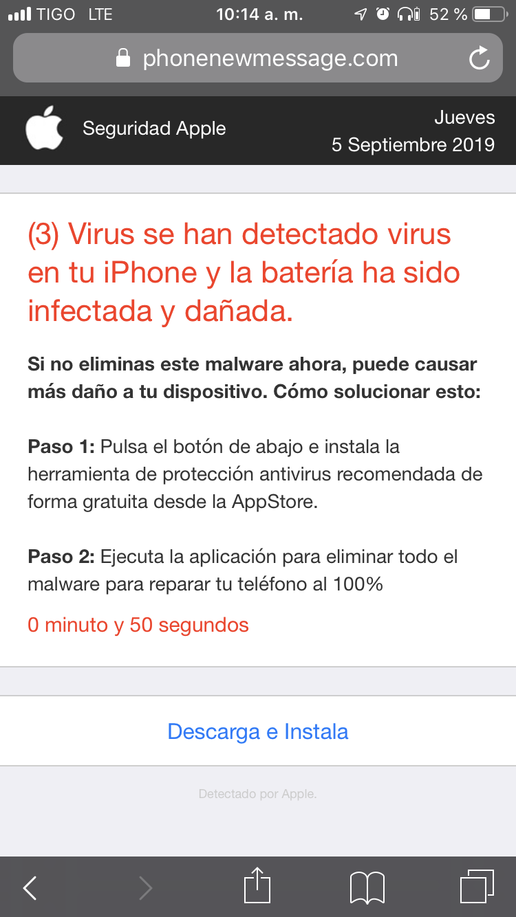 Lo que aparece en la imagen que has adjuntado es una página web. Claramente es una ventana de publicidad engañosa. Los iPhone no tienen virus porque su sistema operativo es muy seguro. Simplemente, cierra esa página y sigue navegando con normalidad.