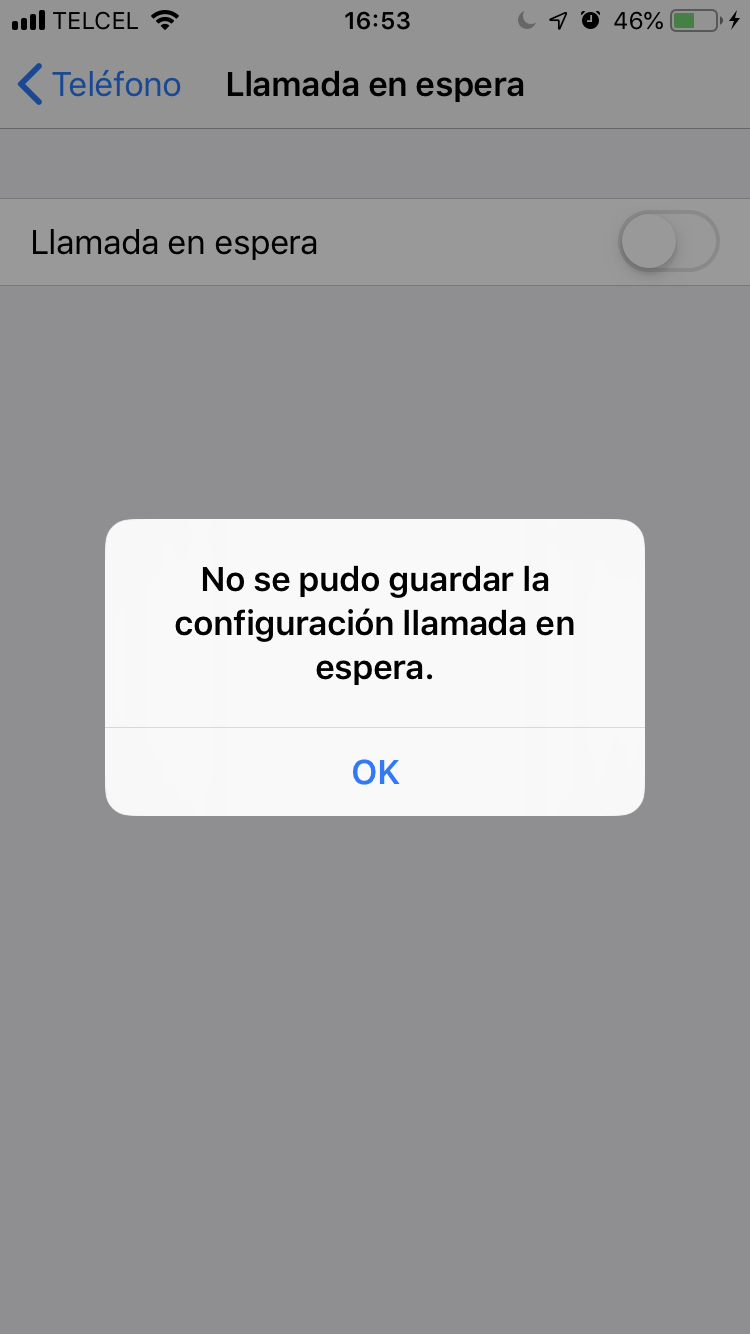 No puedo activar la llamada en espera me arroja el error : no se pudo guardar la configuración llamada en espera