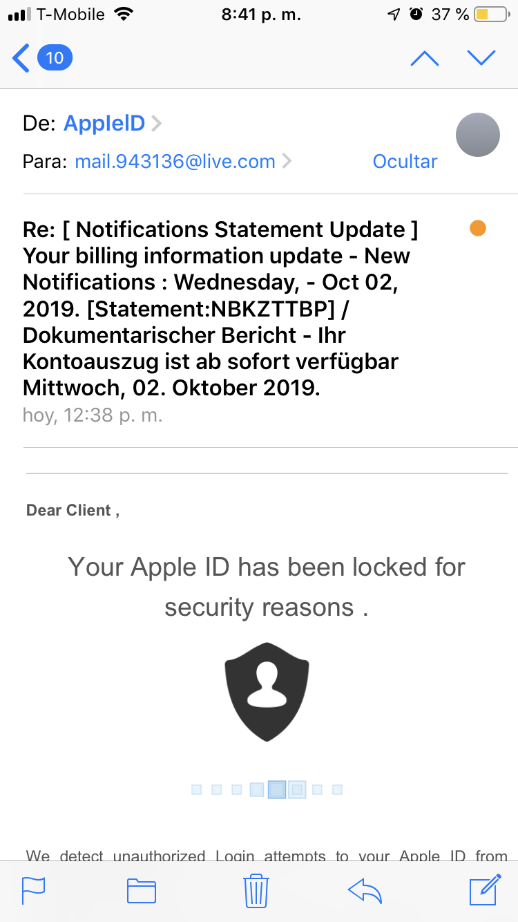 Me están enviando un email diciéndome que cerraron mi Apple ID, es esto real?