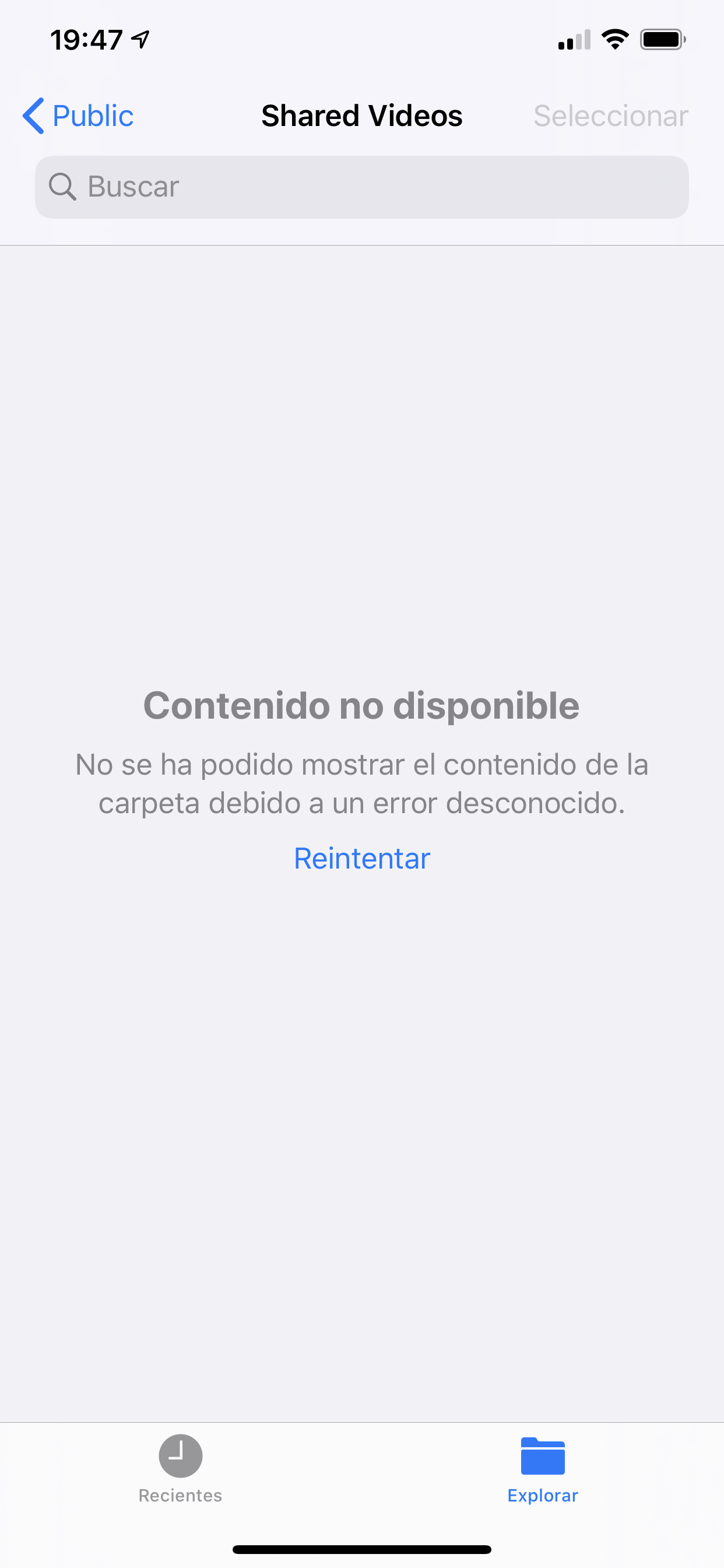 Desde hace aproximadamente una semana, cuando desde la App Archivos de Apple intento acceder a algunas carpetas de algunas ubicaciones, da error.