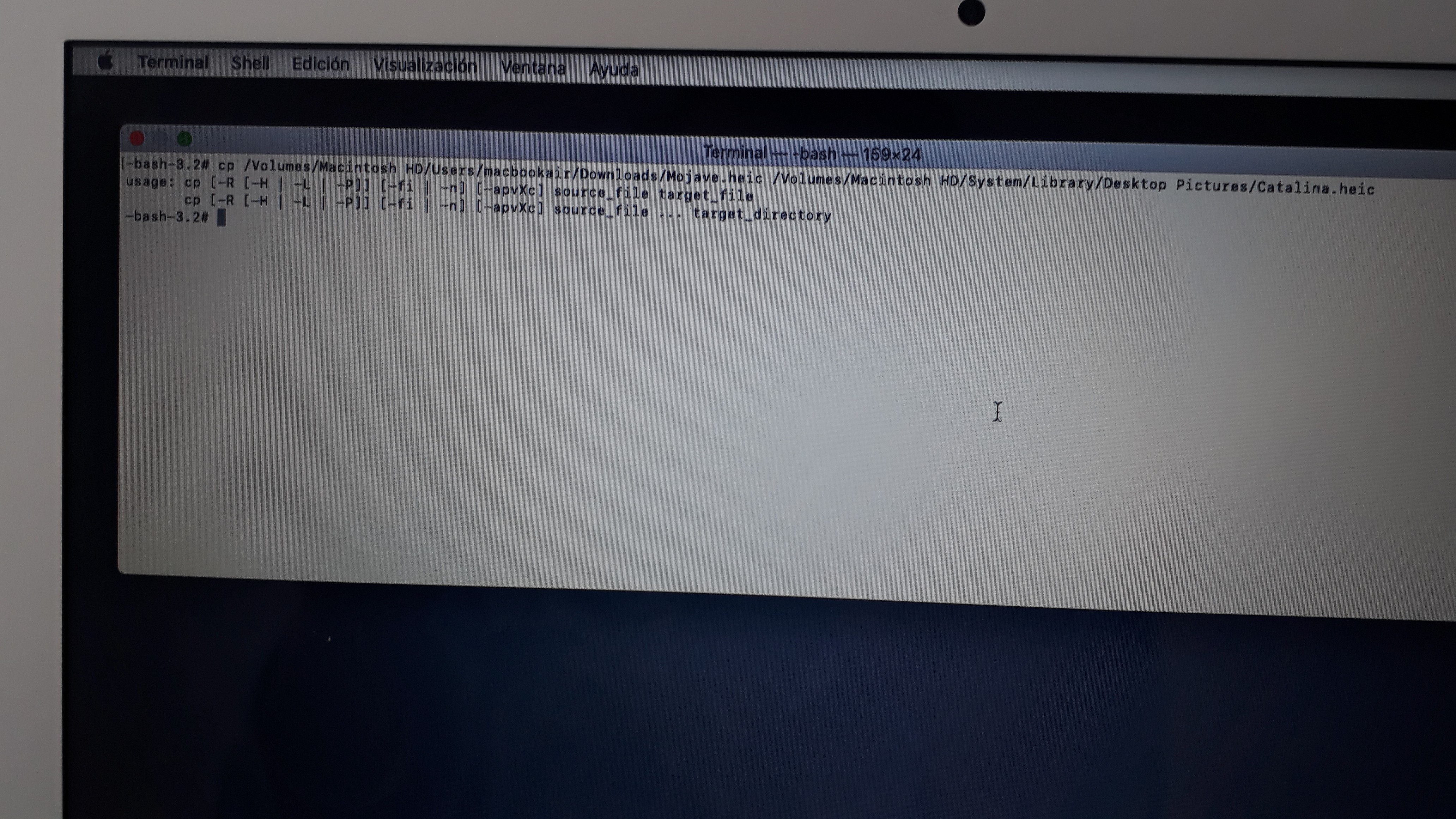 cp /Volumes/Macintosh\ HD/Users/[nombre de usuario]/Downloads/[tu imagen.heic] /Volumes/Macintosh\ HD/System/Library/Desktop\ Pictures/Catalina.heic