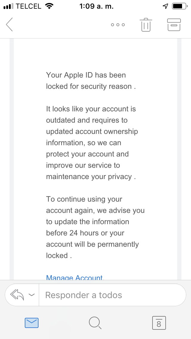Hoy en día hay que tener cuidado con esas cosas. A todos nos llegan correos o avisos de ese tipo y hay gente que intenta robar los datos de las cuentas mediante engaño, así que es importante saber distinguir si un aviso viene de Apple o no.