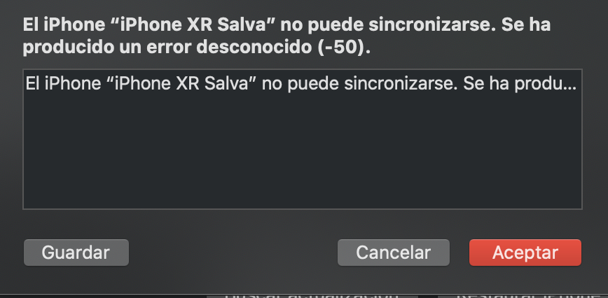 El iPhone “iPhone XR” no puede sincronizarse. Se ha producido un error desconocido (-50). Como Solucionar este problema que surge al descargar y actualizar en Mac OS Catalina?