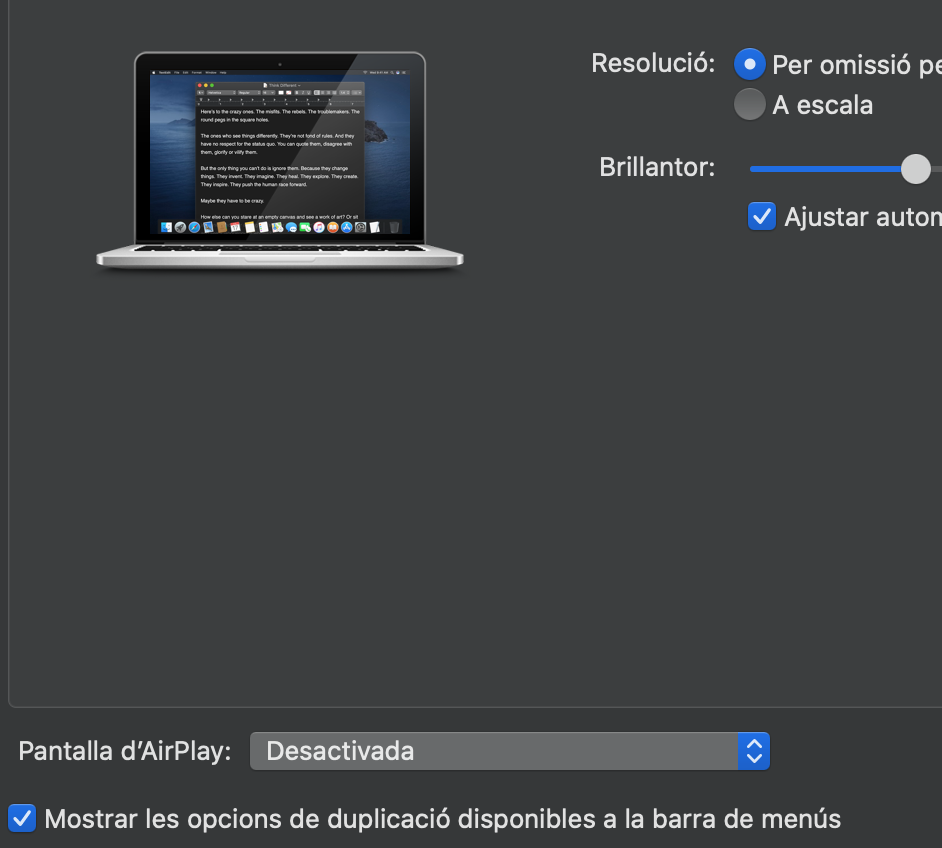 En la pantalla de configuración de pantallas me aparece asi, sin darme opcion a elegir: