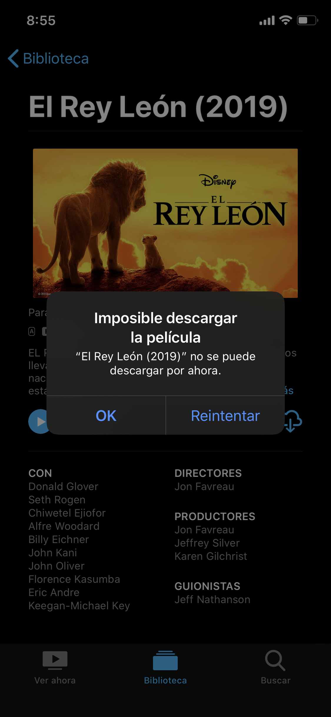 Pongo a descargar la película que compre hace poco, carga por unos minutos y después me sale un mensaje que dice “imposible descargar la película”