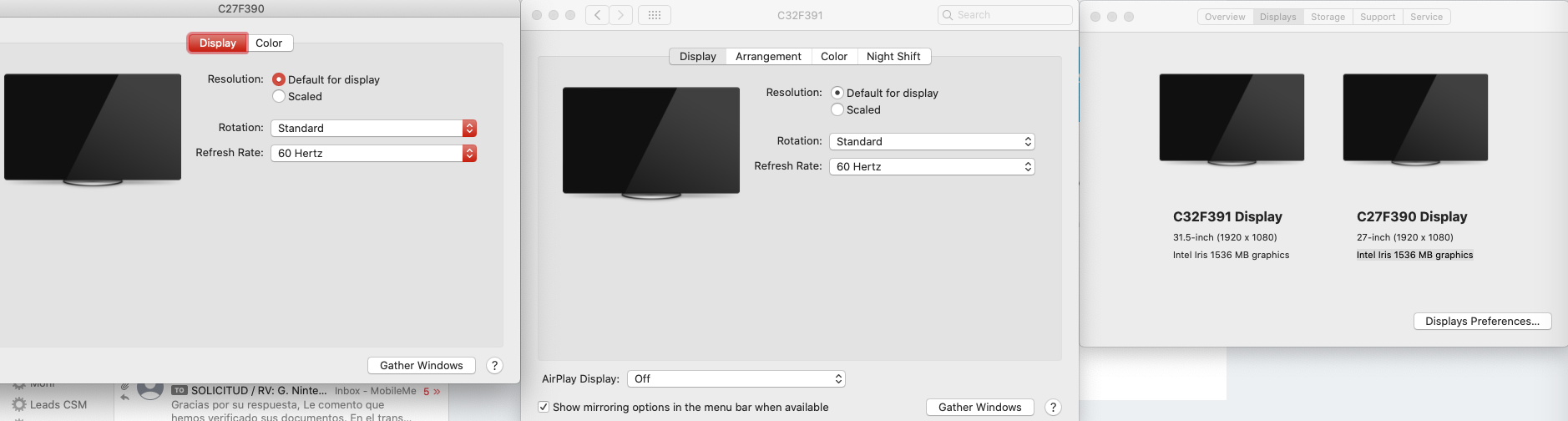Recientemente compre un display de 32" Samsung, Modelo C32F391 31.5-inch (1920 x 1080)Intel Iris 1536 MB graphics, que puse a trabajar junto con mi monitor anterior de 27" Modelo C27F390 27-inch (1920 x 1080) Intel Iris 1536 MB graphics, y el ordenador detecta ambos como si fueran de el mismo tamaño.