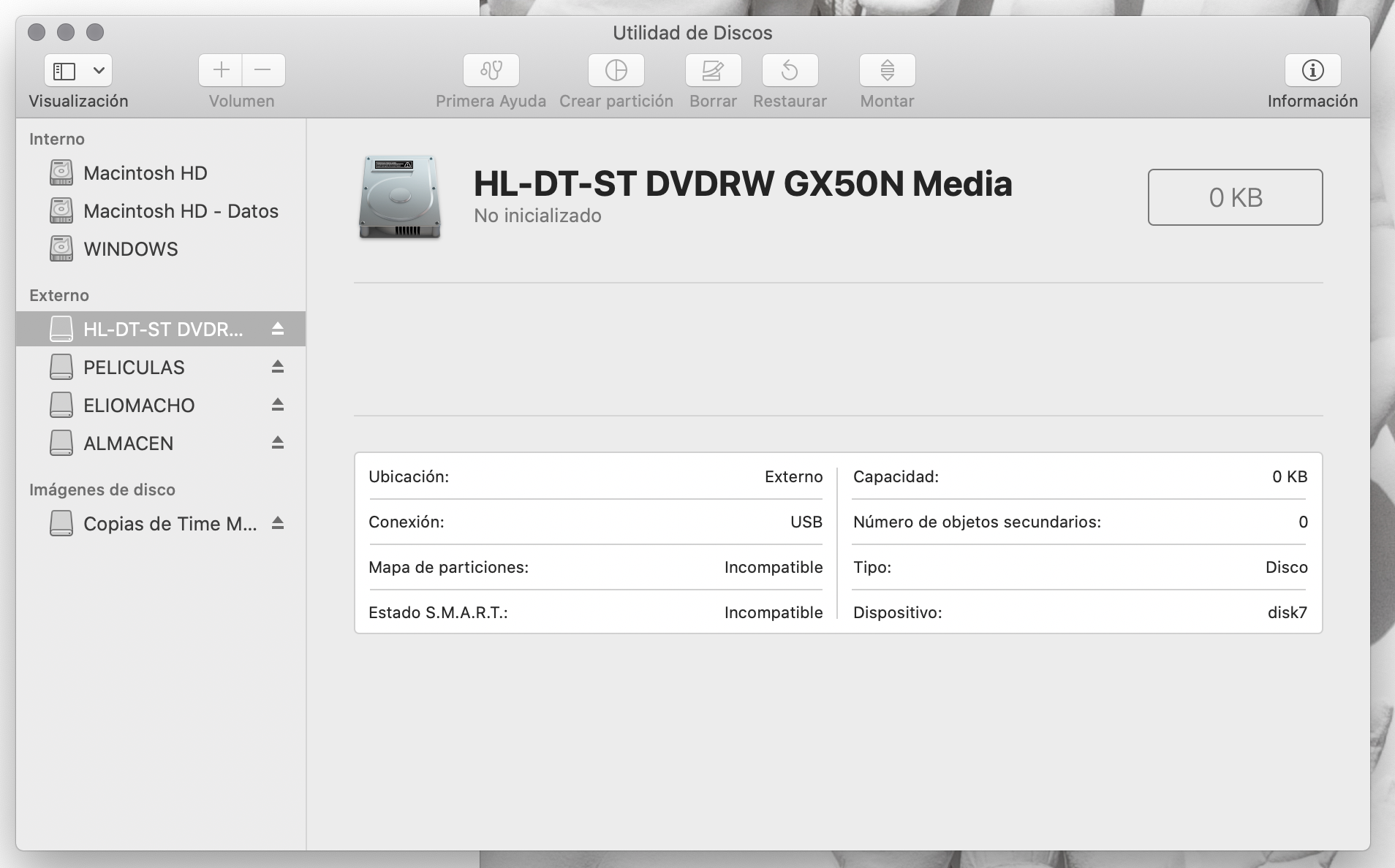 Tengo un super drive que cuando inserto un disco me aparece la utilidad de discos y me dice que no esta inicializado