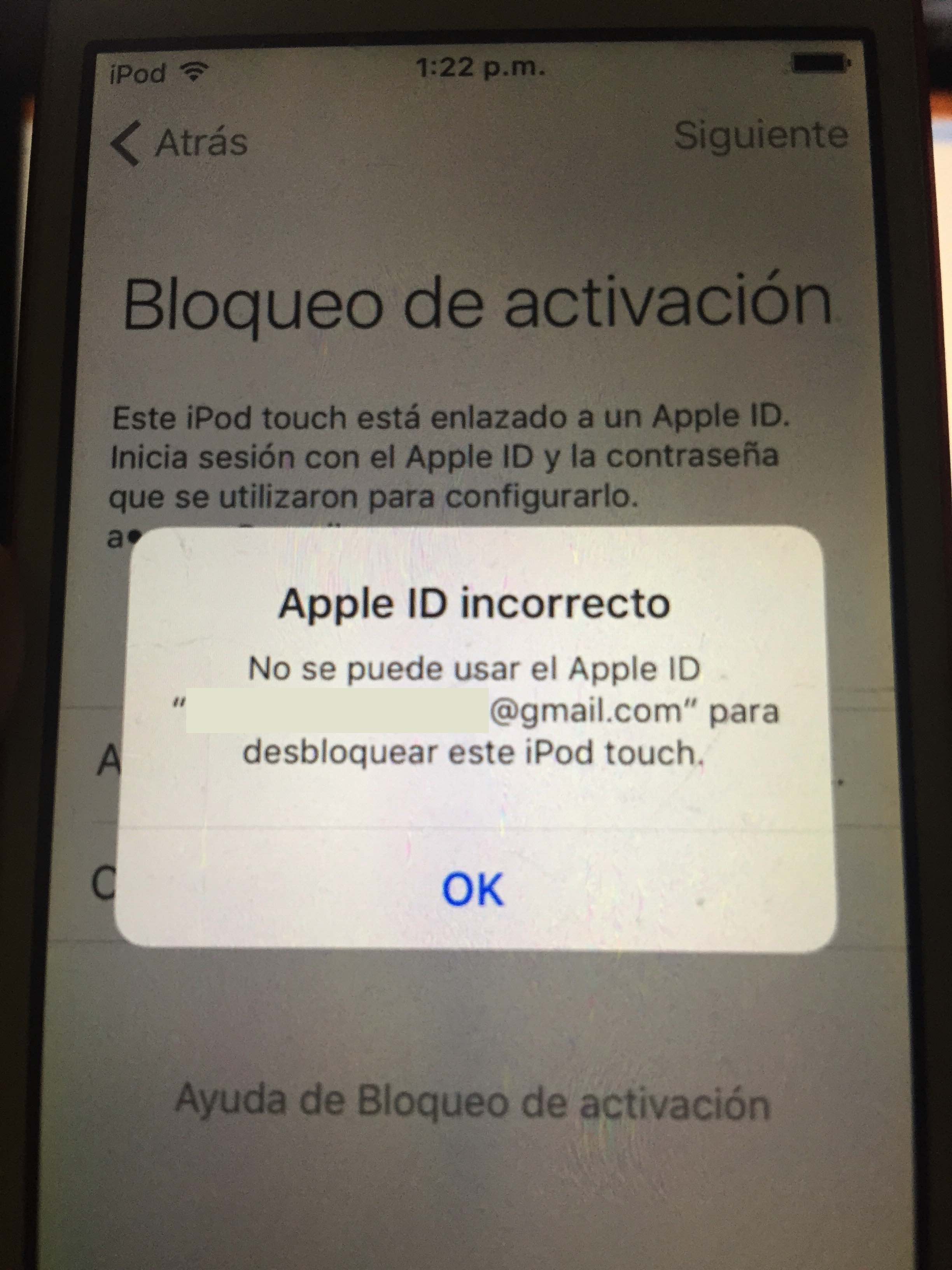 Mensaje no se puede usar el Apple id para desbloquear este iPod
