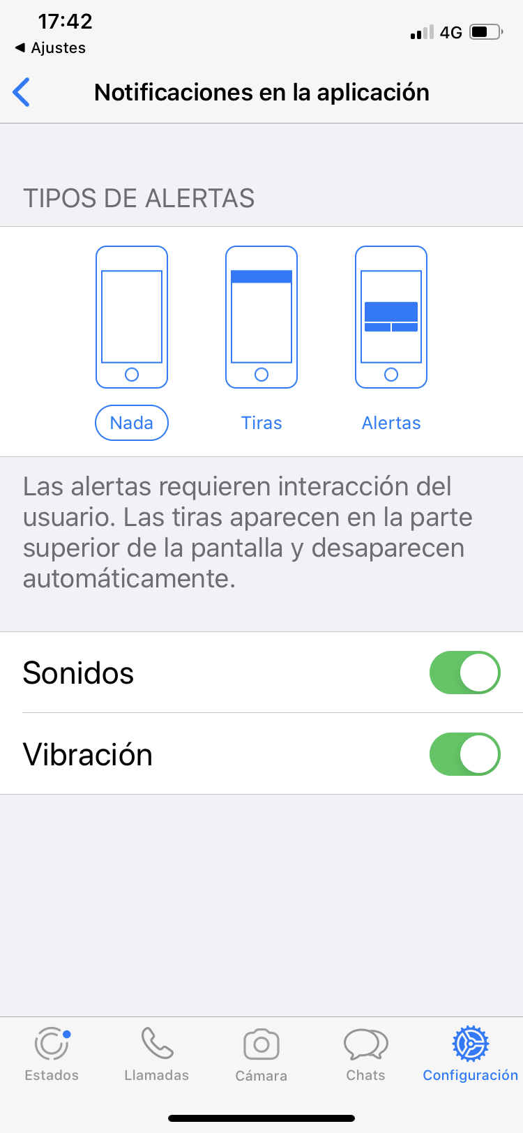 He revisado la configuración de la app y los ajustes del iphone, y tengo todas las notificaciones activadas.