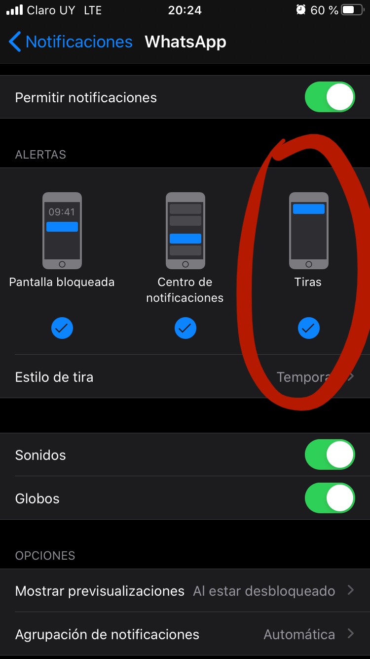 En los ajustes tel teléfono tienes que tener todo activado en el whatsapp, sonidos, tiras, globos, bloqueo, y vibración. Luego ya lo gestionas lo que prefieras desde la app directamente.