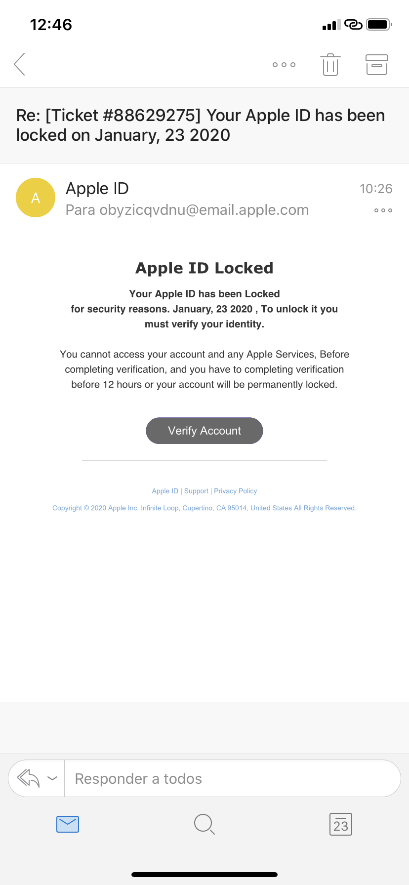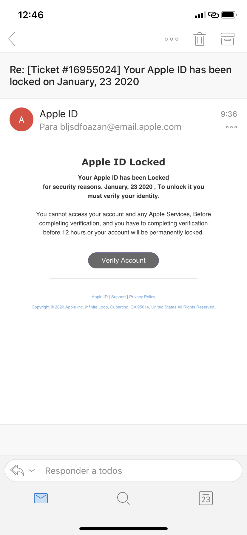 Hoy en día hay que tener cuidado con esas cosas. A todos nos llegan correos o avisos de ese tipo y hay gente que intenta robar los datos de las cuentas mediante engaño, así que es importante saber distinguir si un aviso viene de Apple o no.