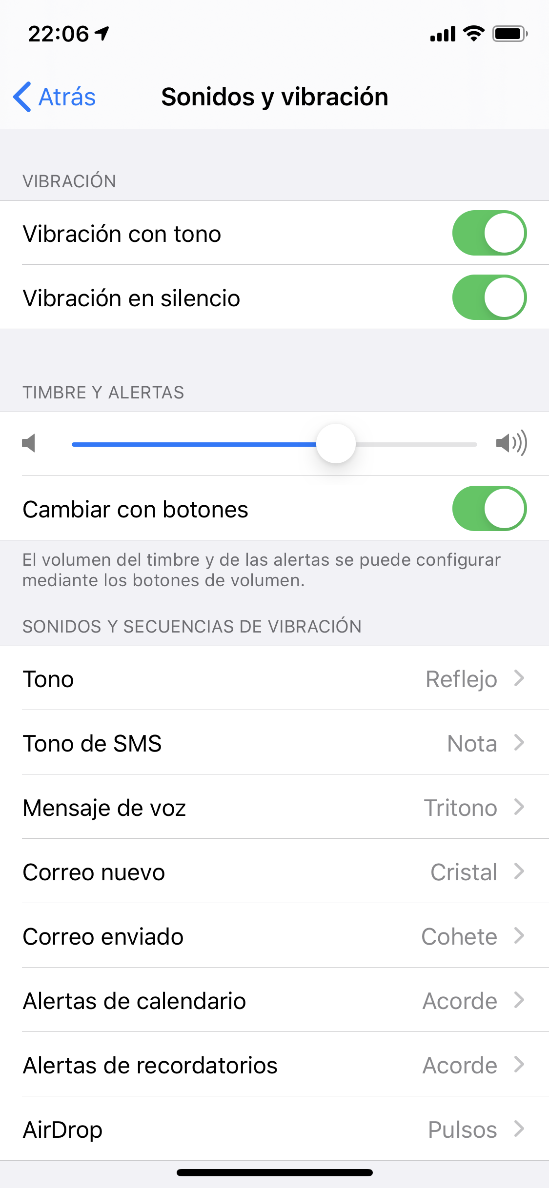 Es error general, no vibra con ninguna notificación. Cuando cambie el aparato copio la configuración anterior y presenta eso. El aparato viejo (el que cambie) al reiniciarlo vibra normal :(