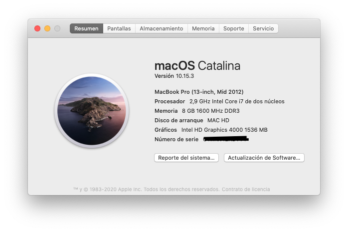 Hola, tengo un problema con mi Mi Macbook Pro de 2012 muestra el siguiente mensaje en las caracteristicas del sistema "2.9 GHz Intel Core i7 de dos nucleos", desde que está así se volvió muy lento y se bloquea constantemente.