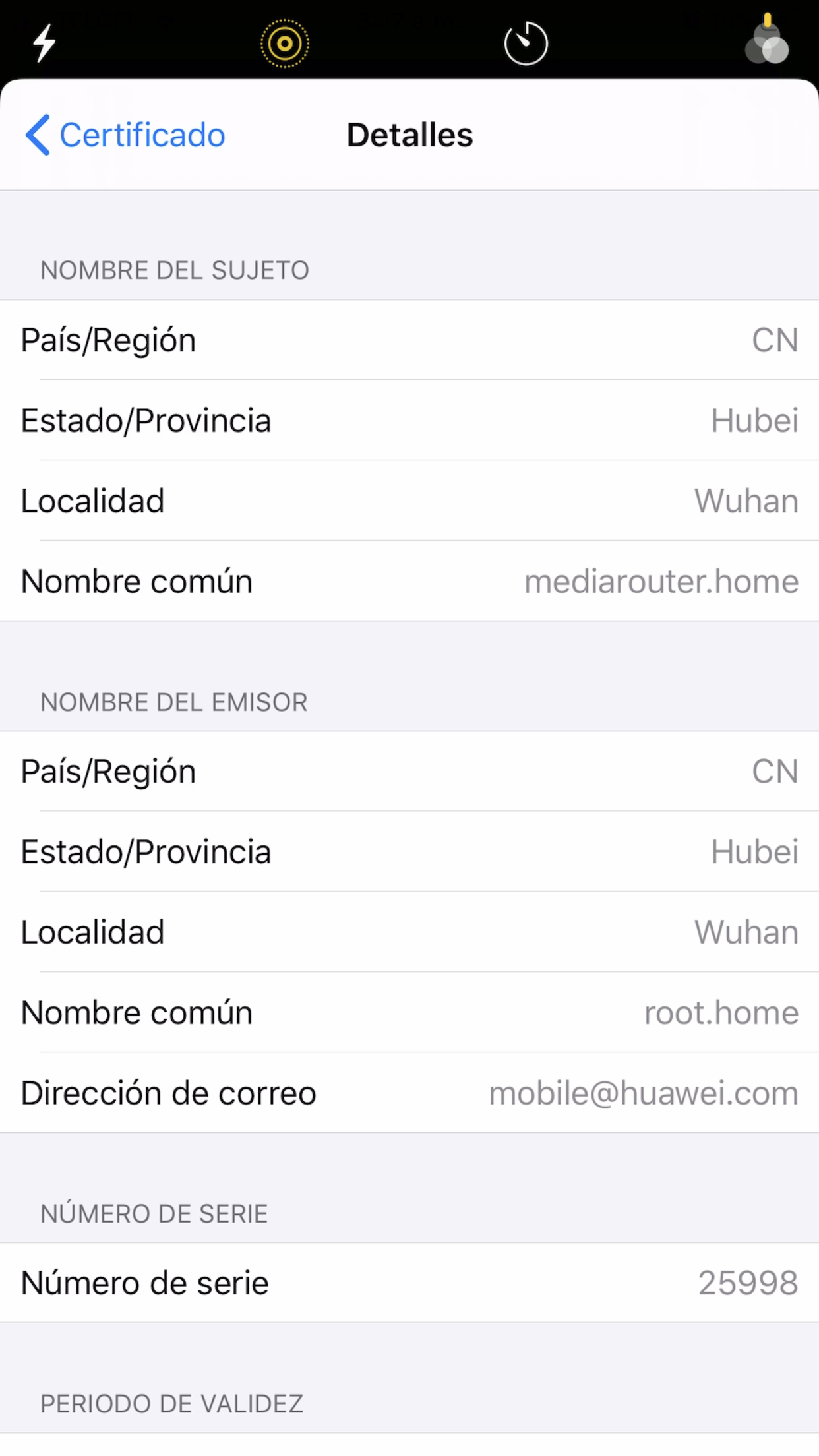 Hola, tengo un iPhone 6s que ya casi no uso, tenia ya prendido como una semana y antier al desbloquearlo me apareció un aviso en medio de la pantalla que dice “imposible verificar identidad del servidor, no se puede identificar la identidad de eas.outlook.com” Pulsé en detalles pero no me salía nada así que di en cancelar. Después al intentar acceder a cualquier página desde safari me apareció un aviso que con un candado rojo que decía que esa página no era segura ya que alguien podría intentar robar mi identidad o información financiera. Pulsé en detalles y me apareció la foto que adjunto enseguida. Ya no pude acceder al wifi a pesar de que arriba me aparecía el icono, indicando que estaba conectada a la señal wifi. A qué se debe esto? Ese iPhone funciona con iOS 13.3, y todas las demás aplicaciones las podía usar normalmente. P.D En los detalles más abajo me apareció mucha información, pero solo me permite adjuntar una imagen. Entre la información que me apareció aparte de la que muestro en la imagen estaba: número de serie, periodo de validez, HUELLAS DIGITALES (eso me preocupo ya que temo que si me hackearon tengan acceso a ellas) espero puedan proporcionarme un correo o algún medio donde pueda enviar todas las imágenes. De antemano gracias