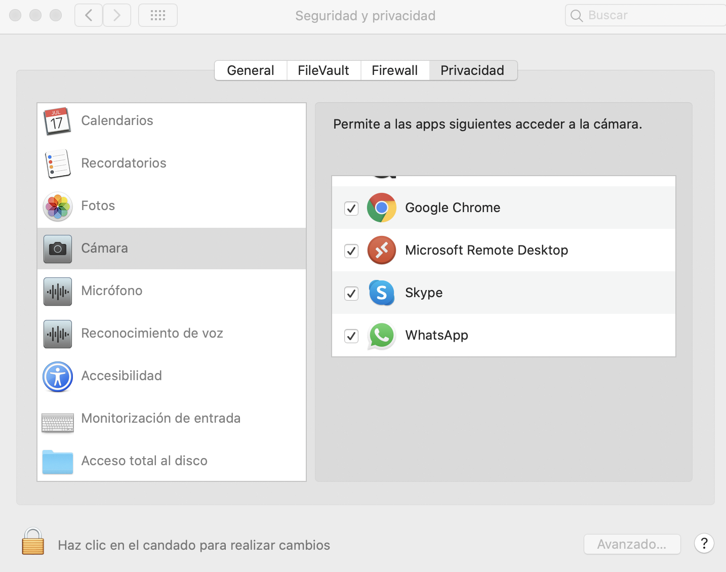 La webcam y el micrófono no funcionan en Safari (Catalina)