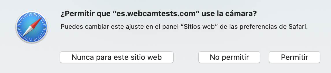 Cuando inicio una videollamada o cualquier otra actividad que emplee la webcam, Safari me pregunta si quiero dar acceso a esa web a usar la webcam, con este mensaje: