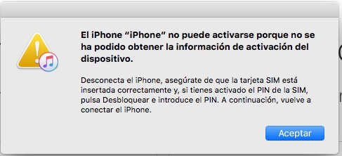 La sim la acepta, ya que me pide el pin, lo entra correctamente y coge señal del operador. Ademas, probe a quitarle el pin a la sim y lo mismo. Incluso he probado con otras sims de otros operadores y lo mismo, con o sin pin en todos los casos consigue señal pero vuelve a la pantalla que no se ha podido activar cada vez que lo intento activar.