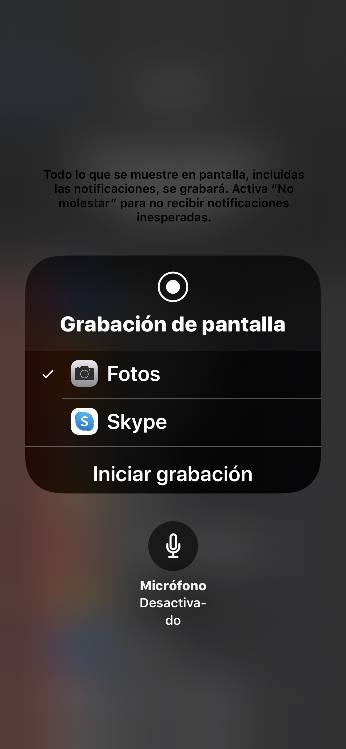 Yo tengo configurado la grabación de pantalla desde el Centro de Control y desde ahí puedo elegir donde se guardan las grabaciones y hasta activar y desactivar el microfono.
