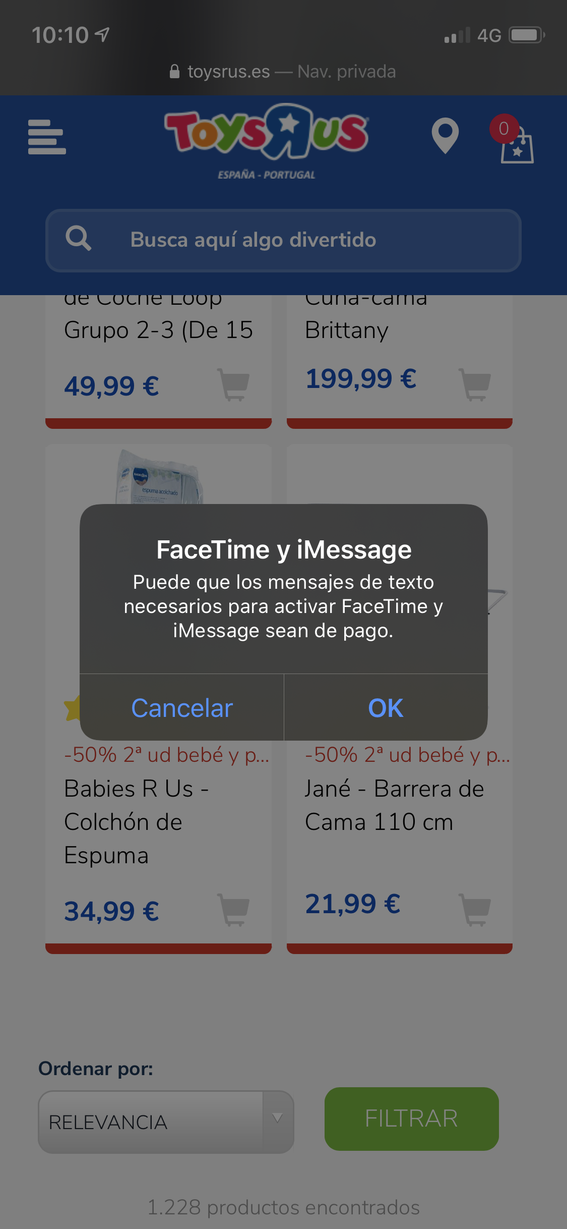 Puede que los mensajes de texto necesarios para activar FaceTime iñy iMessage sean de pago.