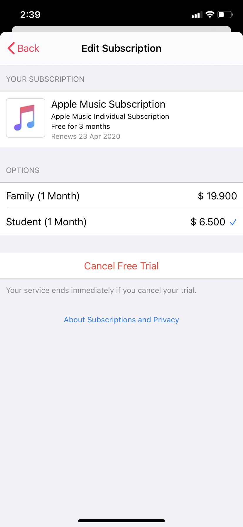 Desde el día de hoy (Viernes 17 de abril 2020) fui a reproducir mi playlist como de costumbre pero no se podía reproducir ninguna canción de mi lista. Era como si sonara un corto “preview” de cada canción y una vez acabara el preview de la canción no volvía a sonar nada, no pasaba a la siguiente canción ni nada. Me pareció muy extraño porque siempre había podido utilizar perfectamente mi playlist pero el día de hoy yo no podía seleccionar la canción que quería escuchar y ni siquiera podía poner la opción de “Aleatorio” como para que sonara cualquier canción porque de una vez me salía un letrero de una ventana emergente que decía: “You are already an Apple Music member”. Este celular lo compre en diciembre, es un iPhone 11 y en Enero empecé a utilizar Apple Music con los 3 meses gratuitos que me ofrecían pero antes de que se acabaran esos 3 meses gratuitos inscribí mi tarjeta para que una vez se acabara el tiempo de una vez cobrarán el valor de la mensualidad lo cual fue totalmente aprobado. Cabe resaltar que elimine la aplicación porque no me servía de ninguna manera y al volverla a descargar seguía registrada con mi ID de Apple normal pero ya no tenía ninguna de mis playlist :(