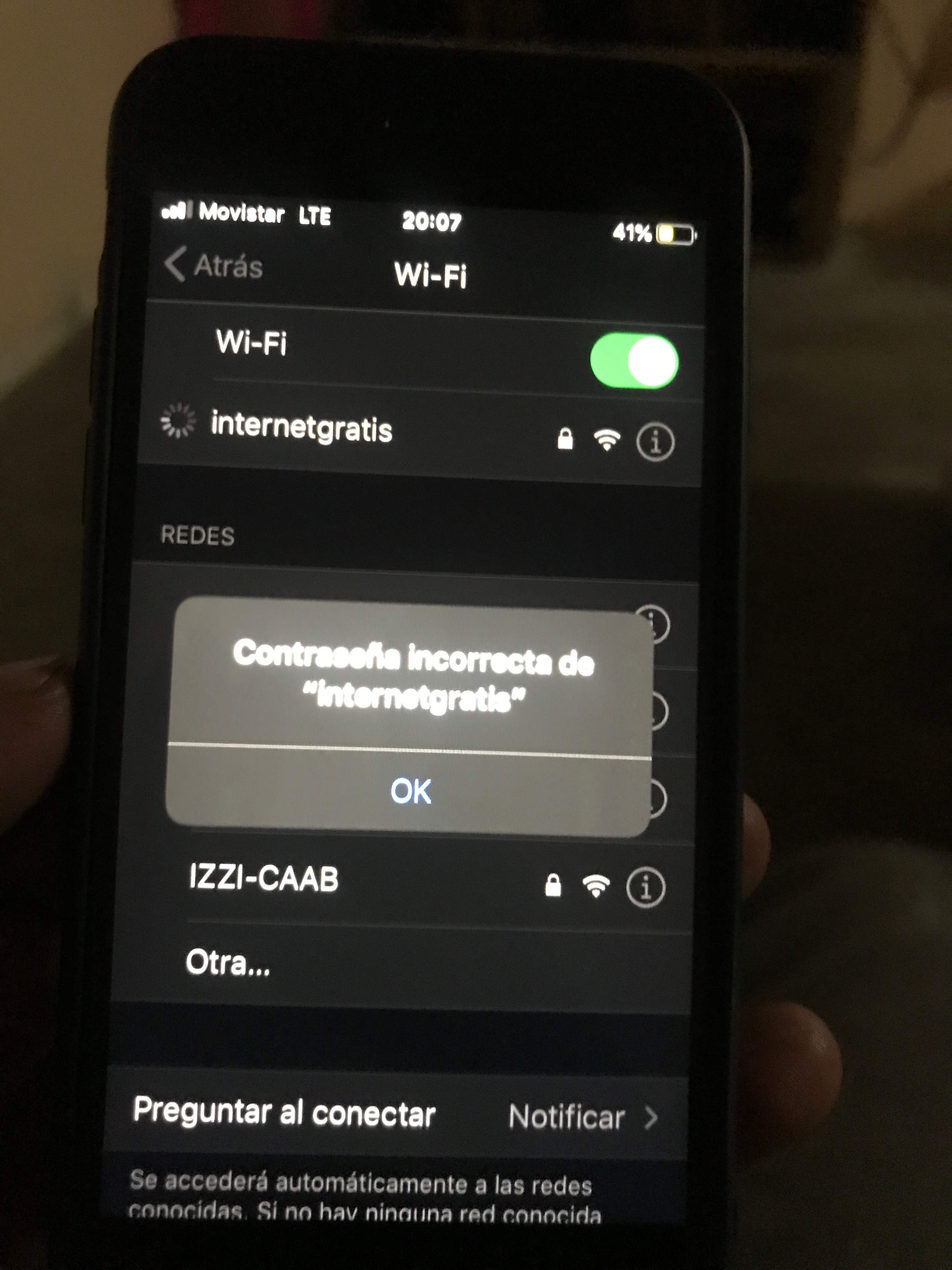 Contraseña incorrecta o no se pudo conectar ala red wifi