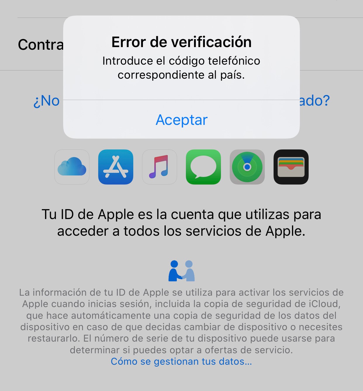 al intentar entrar en mi iphon me dice error introduce el código al país correspondiente