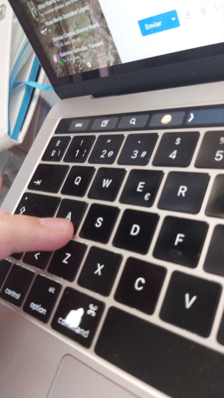 La tecla de la A se rompió y se está atorando constantemente. También la tecla del Command izquierdo se gastó demasiado.