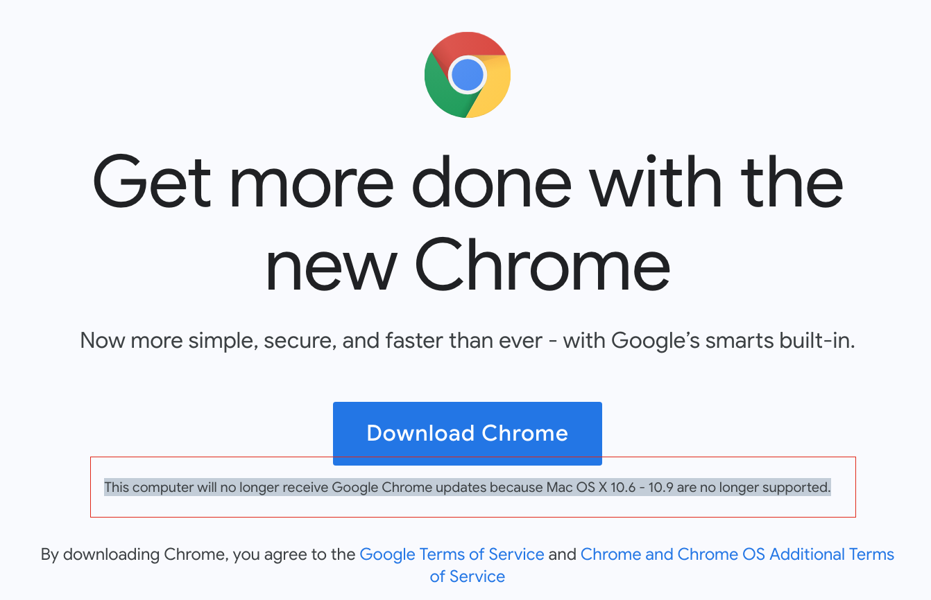 Además de esto, es en el uso doméstico donde también experimento problemas. Ni google chrome ni safari pueden utilizar la mayoría de las plataformas a las que intento acceder o que intento utilizar ya que ninguno de los dos browsers pueden actualizarse más de lo que ya están. Encuentro problemas para usar/ver mubi, netflix, duolingo, vimeo, telegram, nike+, entre otos. El propio google chrome parece estar un "poco loco". En general, cada vez que accedo a una página, recibo un mensaje donde se me pide que actualice mi buscador/browser - pero esto ya no lo puedo hacer con mi actual OS.