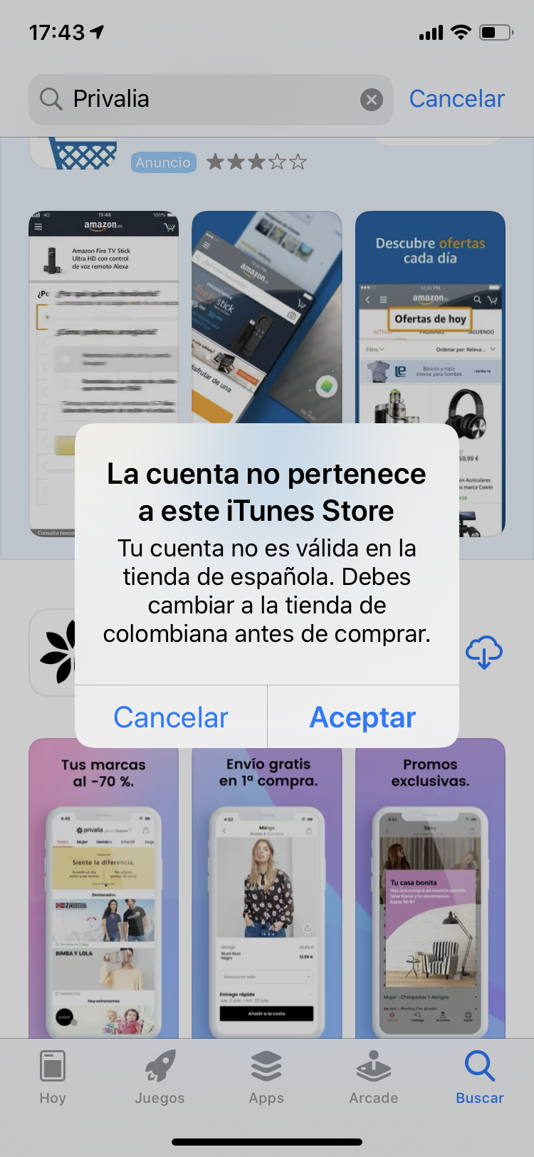Resulta que mi ID fue creado en colombia y ahora vivo en España y me aparece este mensaje al intentar descargar algo. 😩😑😤