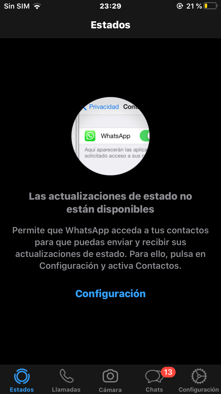 Parece que en WhatsApp no tienes permiso para acceder a tus contactos. Puedes permitir que WhatsApp tenga acceso a tus contactos desde Ajustes > WhatsApp.