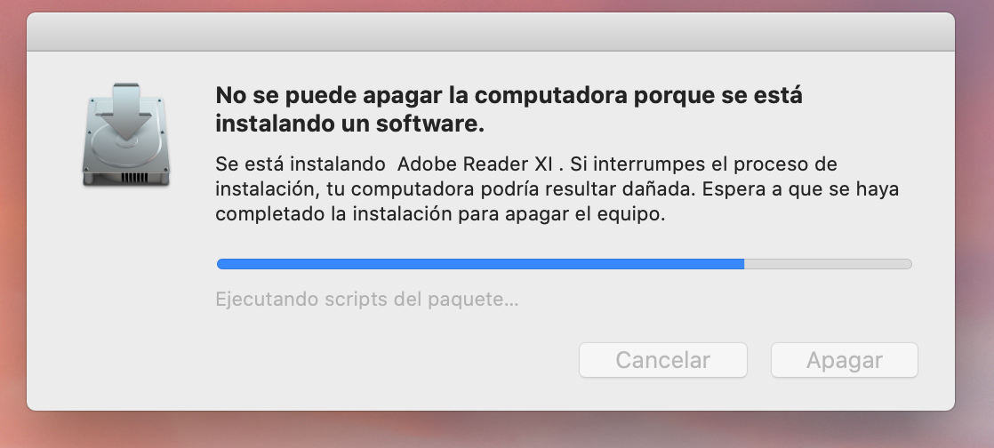 Instale Adobe Reader XI en mi mac 2019 y de la nada se paró la descarga, quiero forzar la salida y borrar la instalación que aun no esta terminada pero no me deja. Alguien sabe que hacer?
