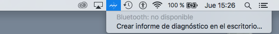 Al presionar Shift + Option no me ha aparecido un menú con la opción de "depurar", pero sí que ha aparecido uno que me permite descargar el Bluetooth Reporter.