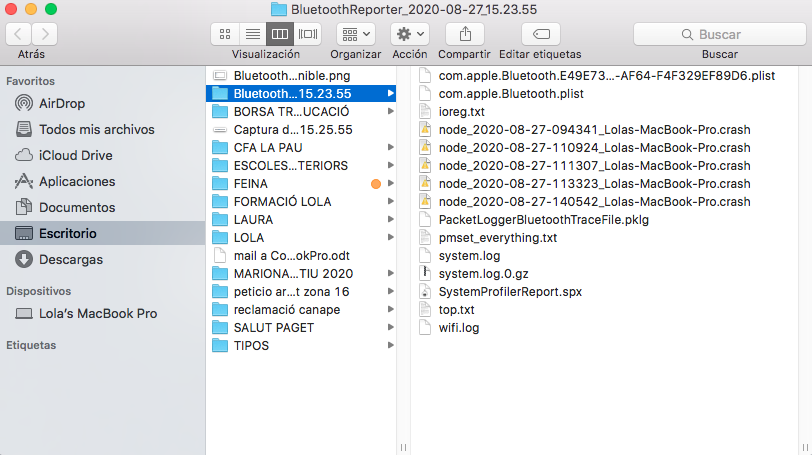 Os adjunto imágen del interior de la carpeta del Bluetooth Reporter, por si podéis descifrar el problema que ha aparecido y cómo poderlo solucionar.