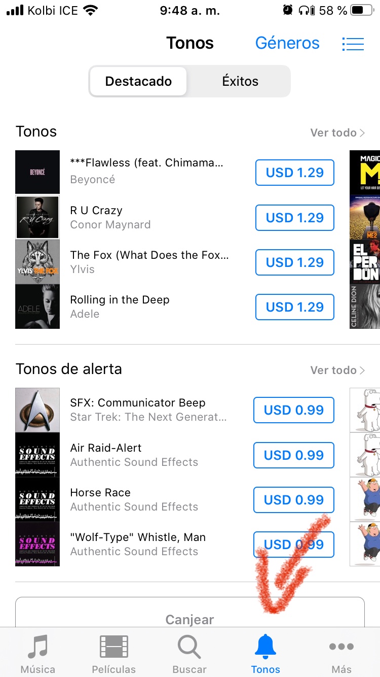 hola, llevo varios dias tratando de poner una cancion que compre en itunes pero no me sale la opcion de ponerla de ringtone, que hago?