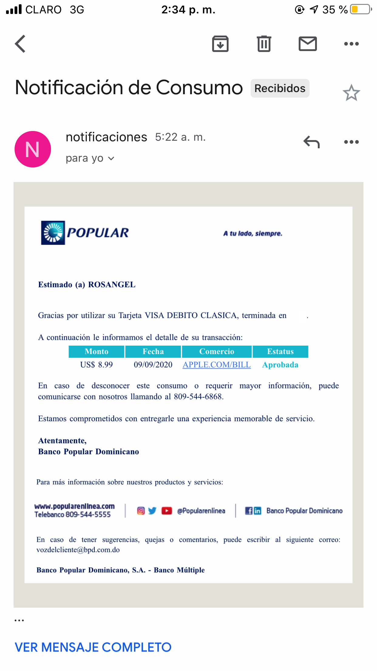 Buenas me están cobrando semanal 8 dólares sin estar suscrita ni tener mi tarjeta registrada en mi celular. Necesito saber cómo resolver o si pueden desvincular la tarjeta mía a la cuenta que este de apple