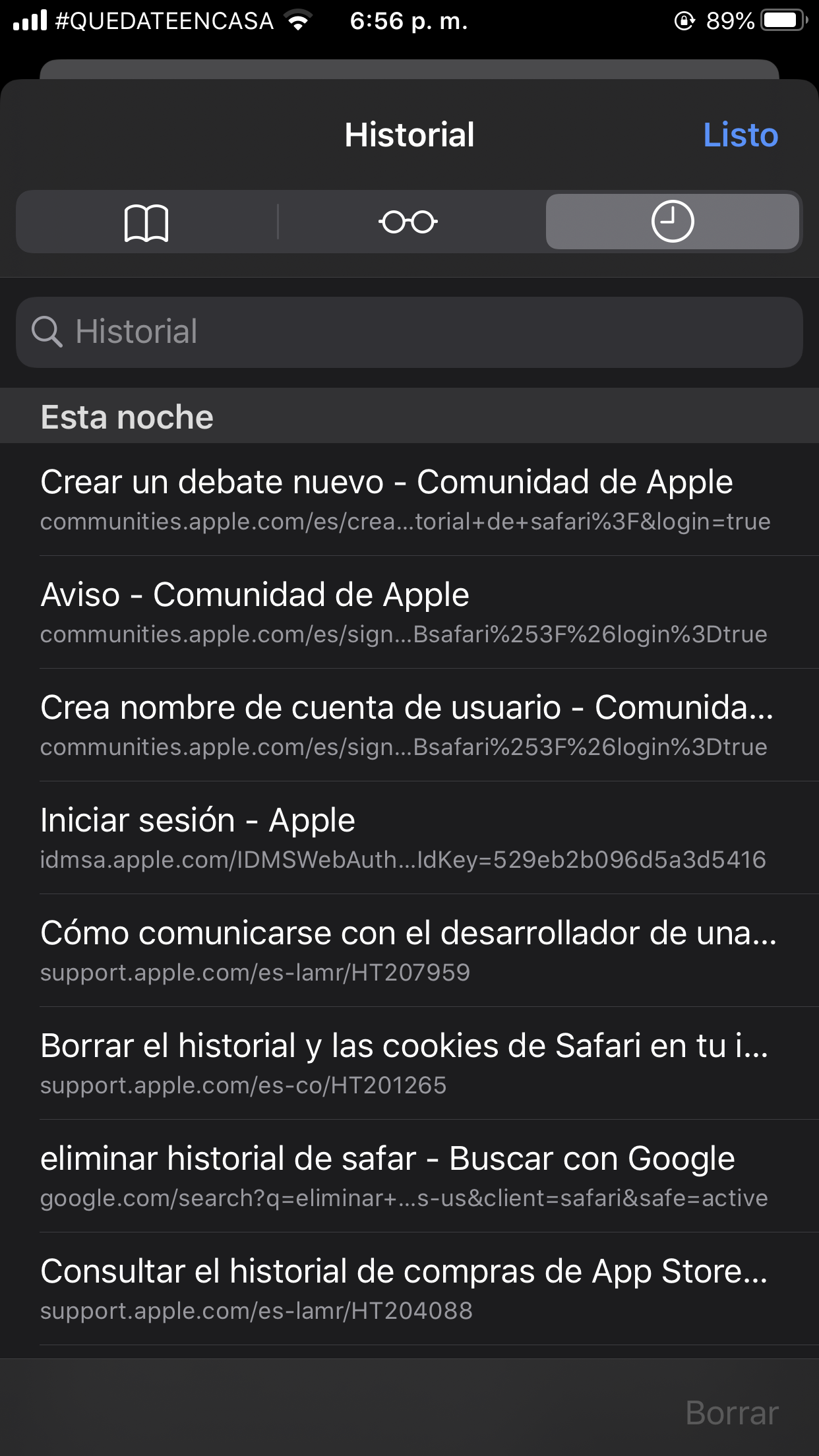 Prueba desde los Ajustes del iPhone, Safari, Borrar historial y datos de sitios web.