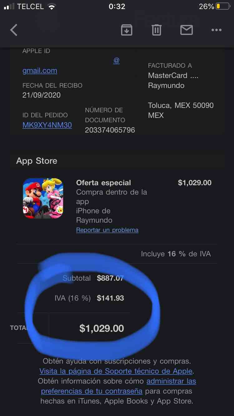 Buenas noches, estoy viendo que me llego mi recibo de unas compras que hice ITunes, veo que tienen IVA, por esa Razón solicito una factura con mai datos fiscales. Gracias!!