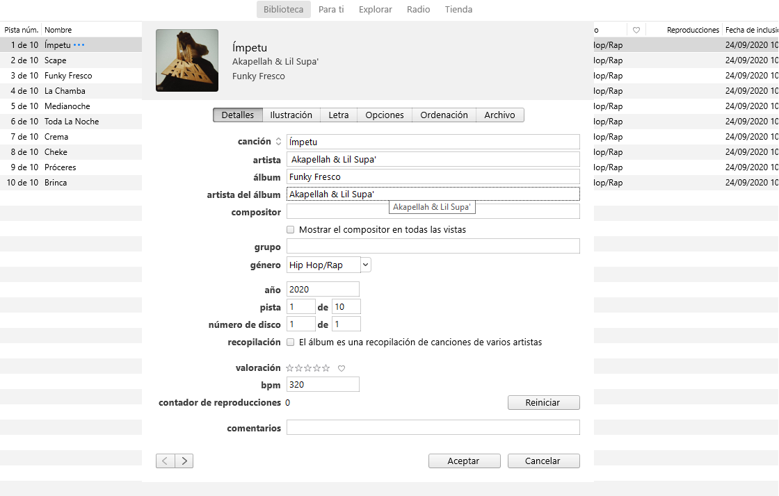 Ahora mismo intento resolver este problema con este álbum, donde tanto Akaphellah como Lil Supa' son artistas independientes, pero se unieron para este proyecto. Cabe mencionar que tengo varios álbumes de Lil Supa' en iTunes, por lo que me incomoda un poco que este álbum no aparezca en su pestaña de Artistas, sino en "Akapellah & Lil Supa'".