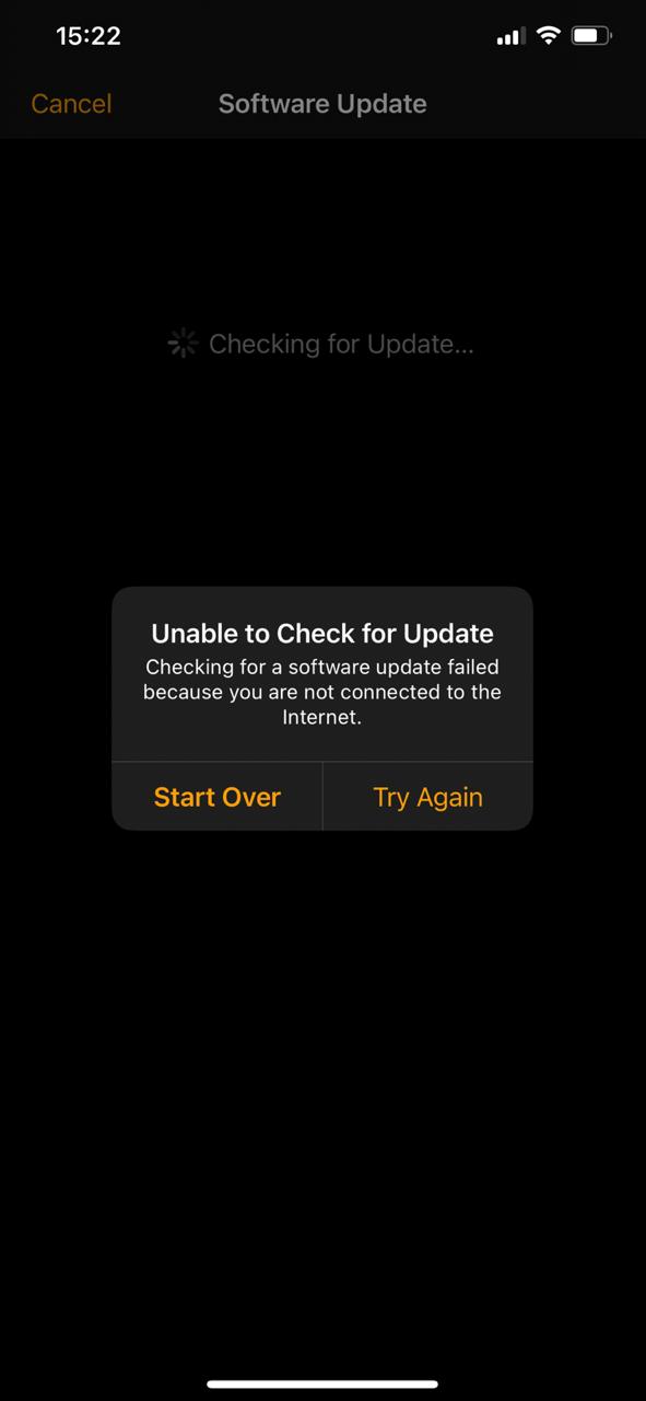 lamentablemente a pesar de estar conectado a WIFI y siguiendo todas las recomendaciones de Apple me aparece el siguiente mensaje: