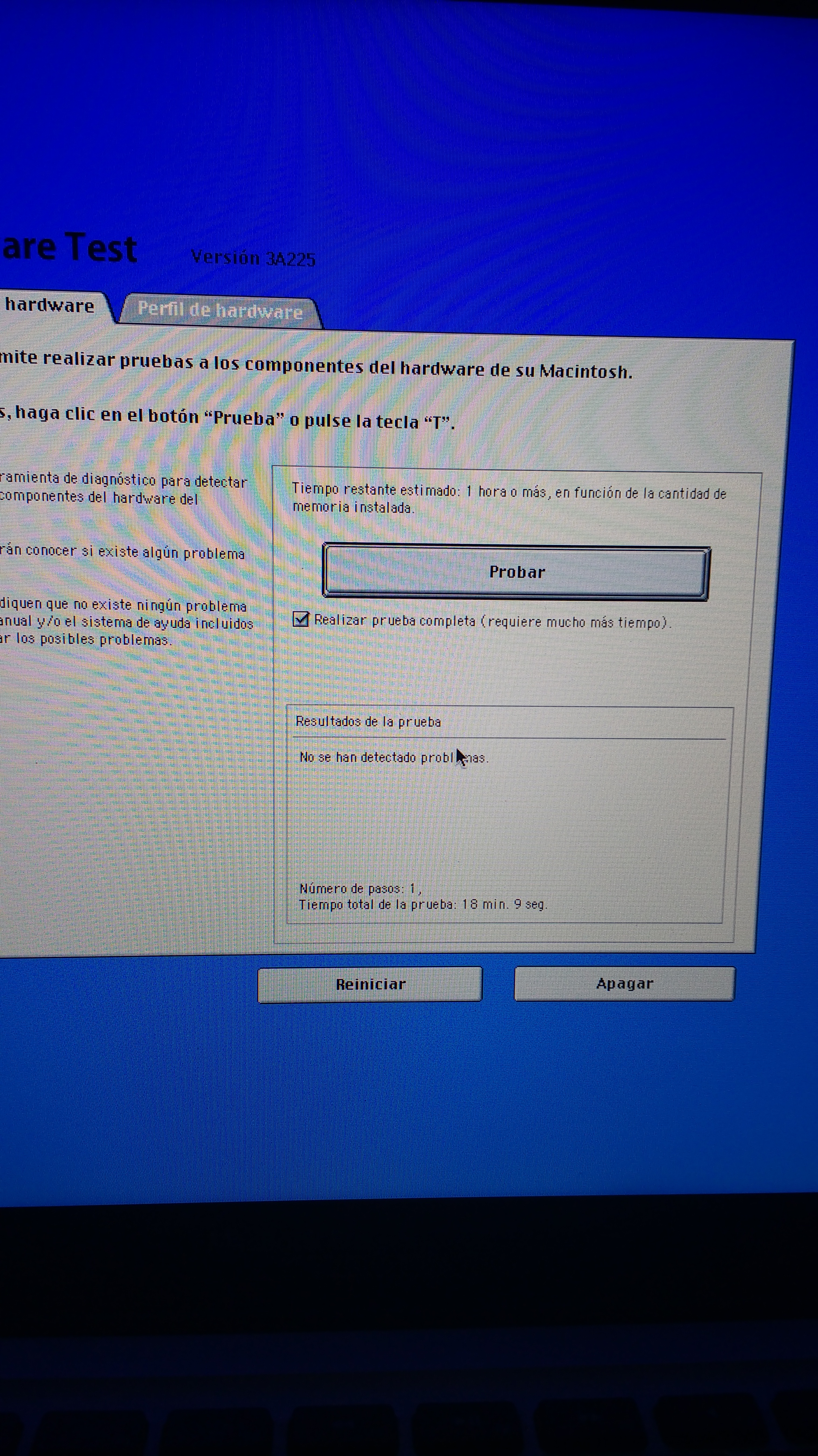 Anterior a todo esto, Opción + D para Apple Hardware Test. No encontró ningún error.