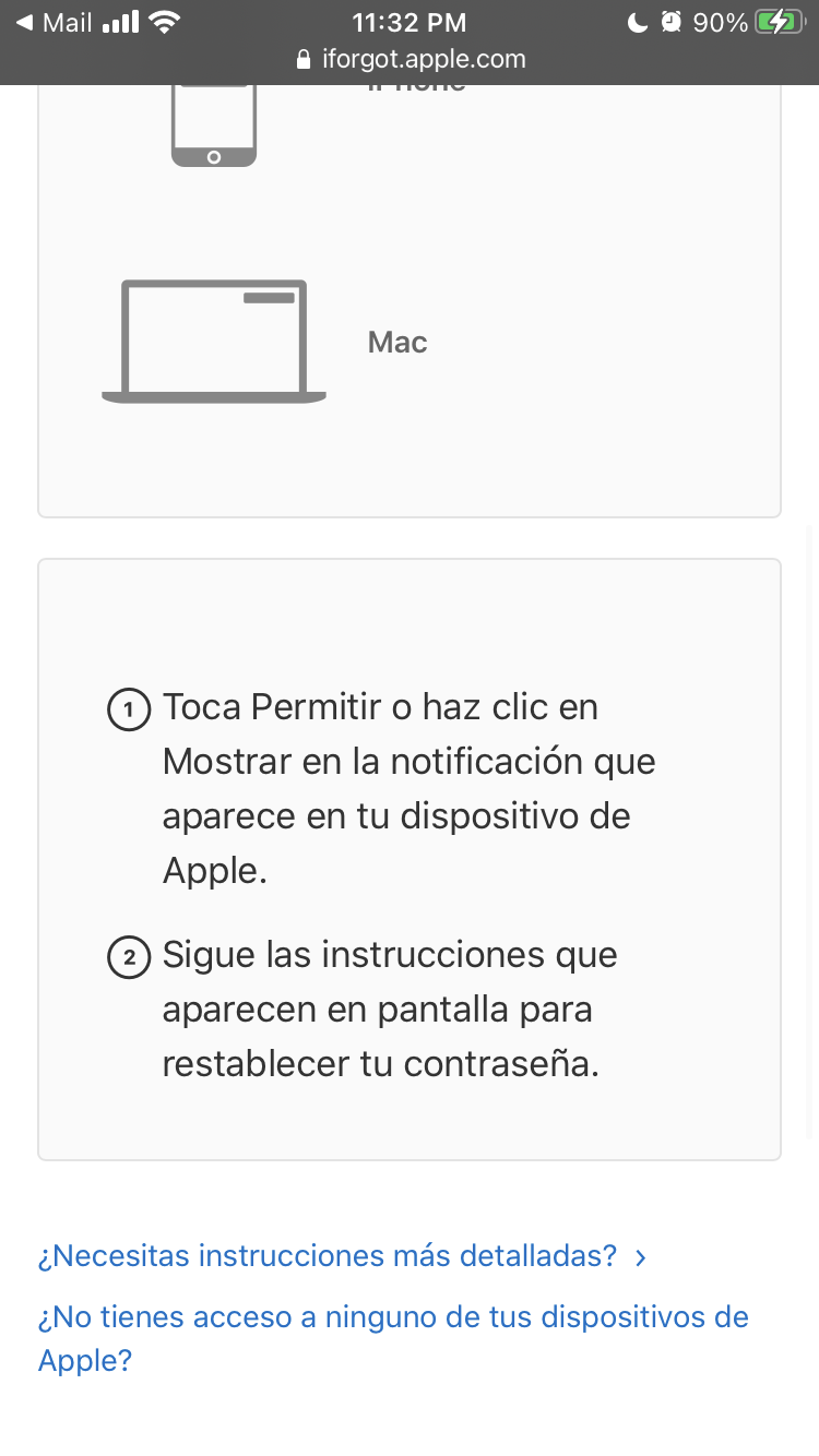 En ese caso sino tiene acceso a esos equipo seleccionas “no tienes acceso a ninguno de tus dispositivos de apple”