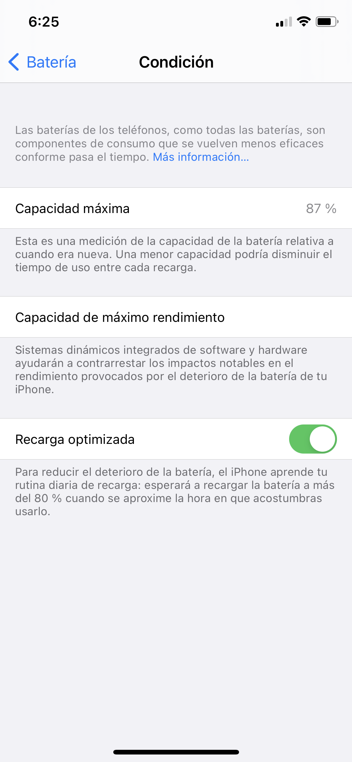 ¿Es normal que después de menos de 9 meses la capacidad máxima de la batería de mi iPhone 11 Pro este en 87%?