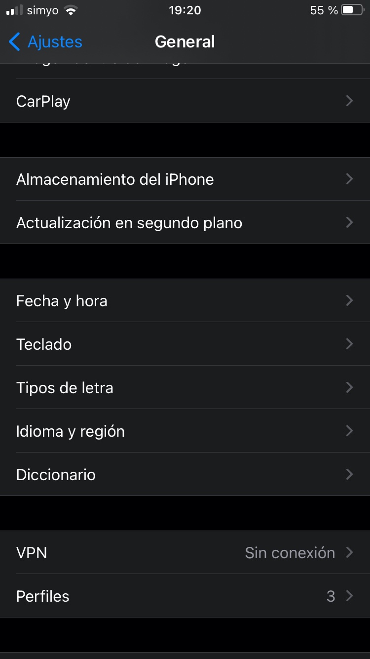 La lista de perfiles, donde se almacenan los certificados instalados, está en Ajustes>General, al final de la pantalla.