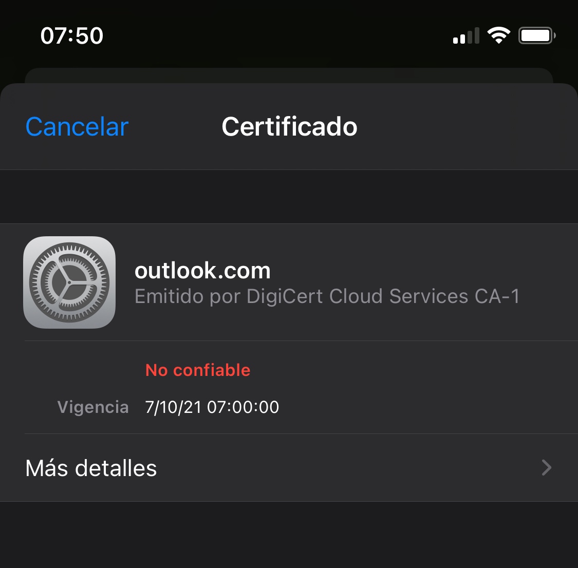 Hola me llamo Gabriel "***" en mi iPhone 11 Pro salió un mensaje en la pantalla indicando que mi certificación oulock no es de confianza y reviso en los detalles y salen unas direcciones y nombres que no comprendo !! ¿ Me podrían ayudar ?