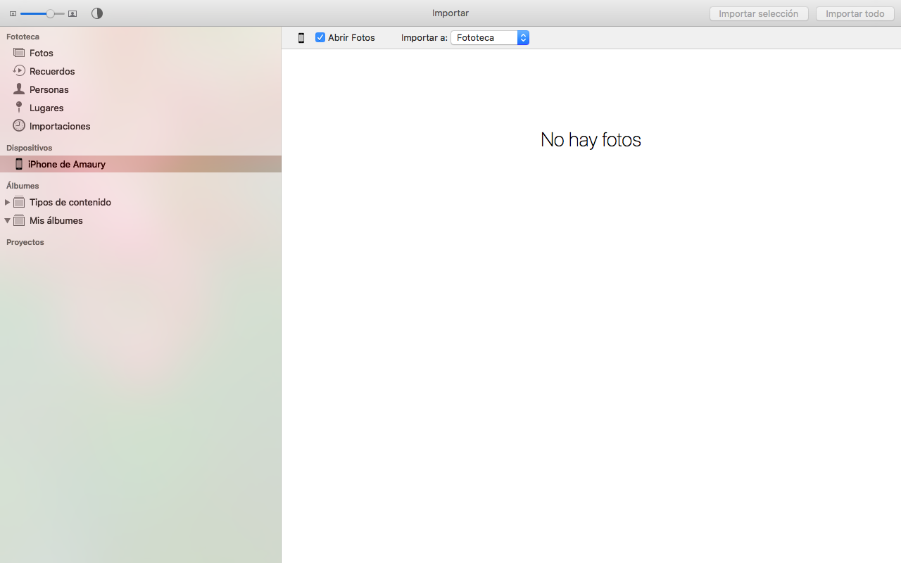 no puedo importar fotos del iPhone AL MAC