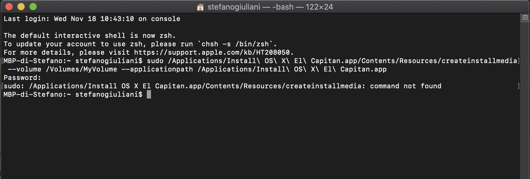 - Presiona Return después de escribir el comando.